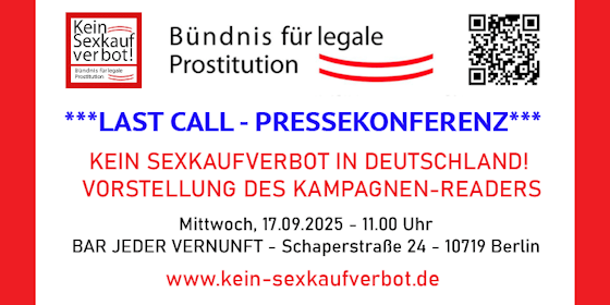 Hier fand am 17. 09. 2025 die Pressekonferenz statt, der Reader wurde vorgestellt, einige Autoren des Readers nahmen Stellung zum Sexkaufverbot.